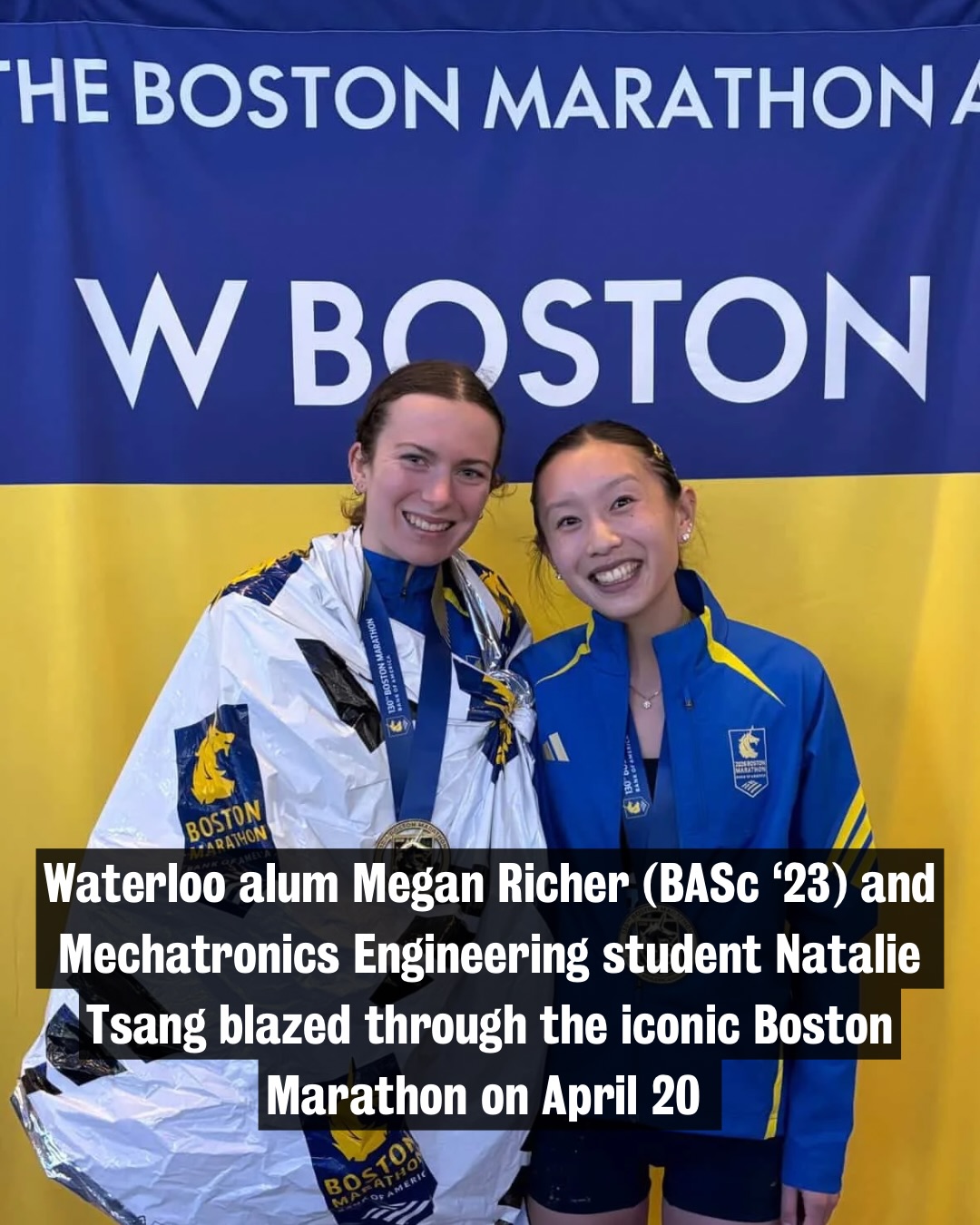 Natalie Tsang finished the race with an incredible time of 3:03:51 while Megan Richer was not far behind with an impressive time of 3:11:47. Well done ladies, congrats on your race all while representing #UWaterloo with pride. π€π