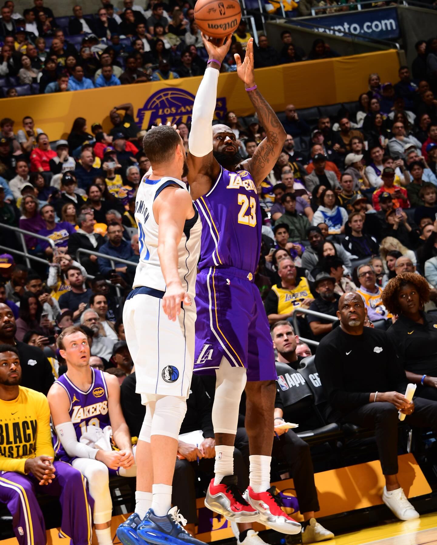 @kingjames made history last night in an Ohio State-inspired Nike LeBron 23 vs. the Mavs, becoming the oldest NBA player to record a triple-double at the age of 41 ๐ฅ
