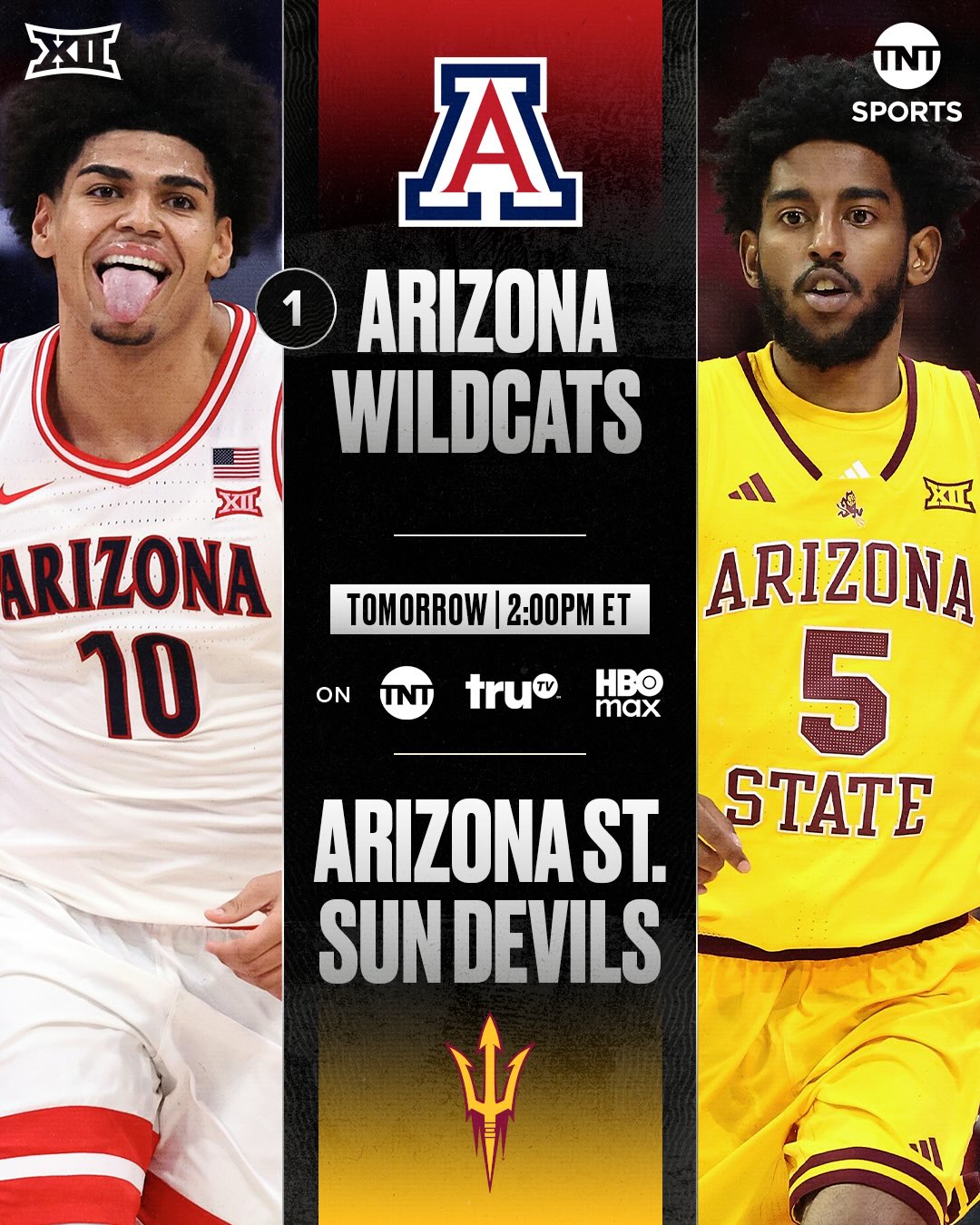 Don’t miss No. 1 @arizonambb take on Arizona State tomorrow at 2pm ET on TNT, truTV, & HBO Max 📺