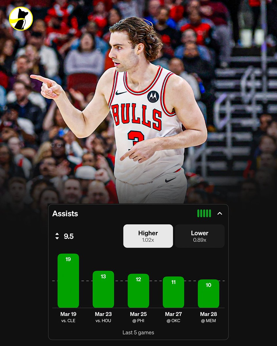 Josh Giddey is on a 5-game 10+ assist streak. He has 26 games with 10+ assists this season, ranking third in the NBA behind Nikola Jokic and Cade Cunningham.