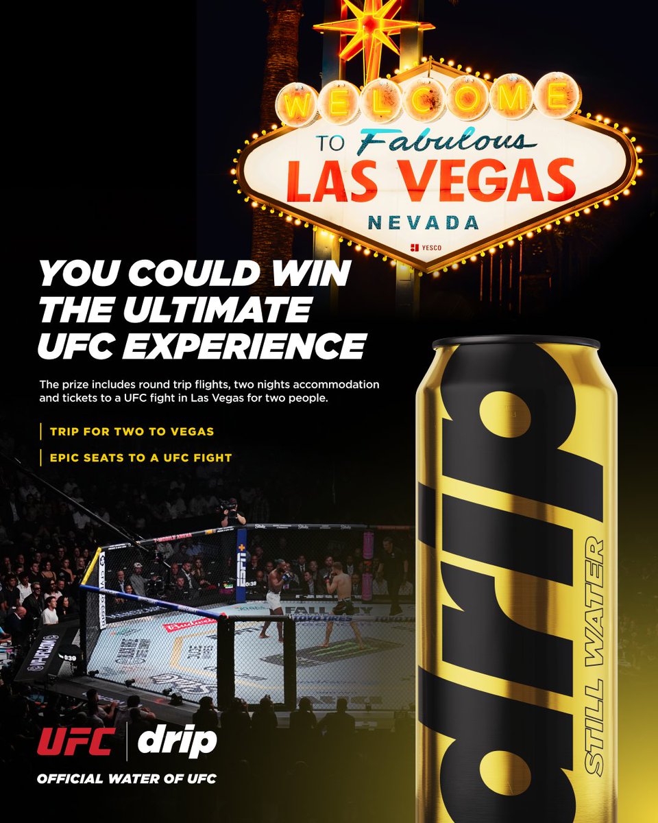 ๐๏ธ UFC VEGAS SWEEPSTAKES ๐๏ธ @ItsDripWater are giving away two tickets and round-trip flights to a UFC event in Las Vegas ๐ Find out how to enter here: UFC.ac/3Mklysv