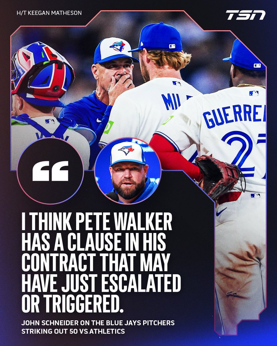 John Schneider thinks Blue Jays pitching coach, Pete Walker might have contract clauses he's already hitting after the team got 50 strikeouts in their first three games of the season ๐ (h/t: @KeeganMatheson)
