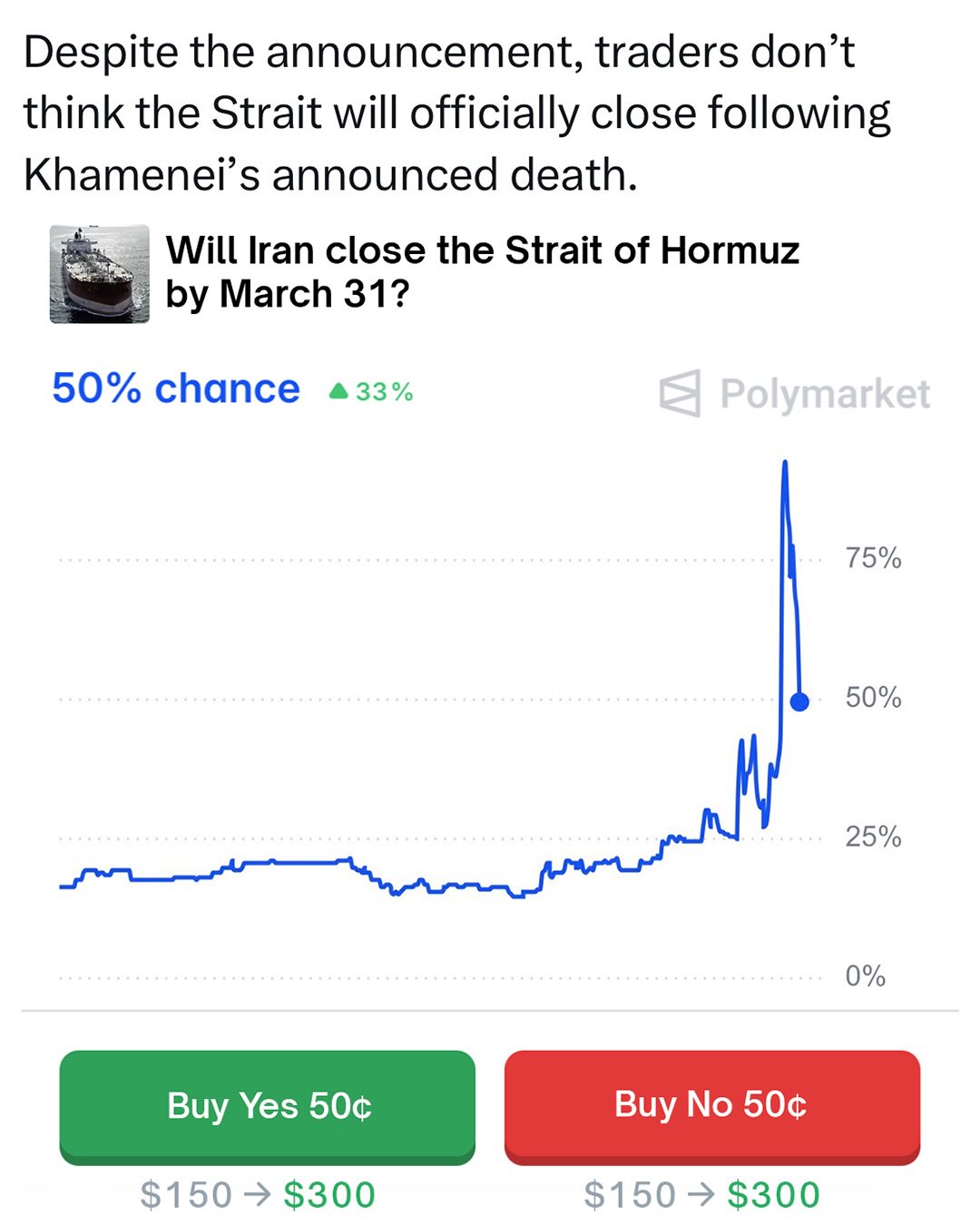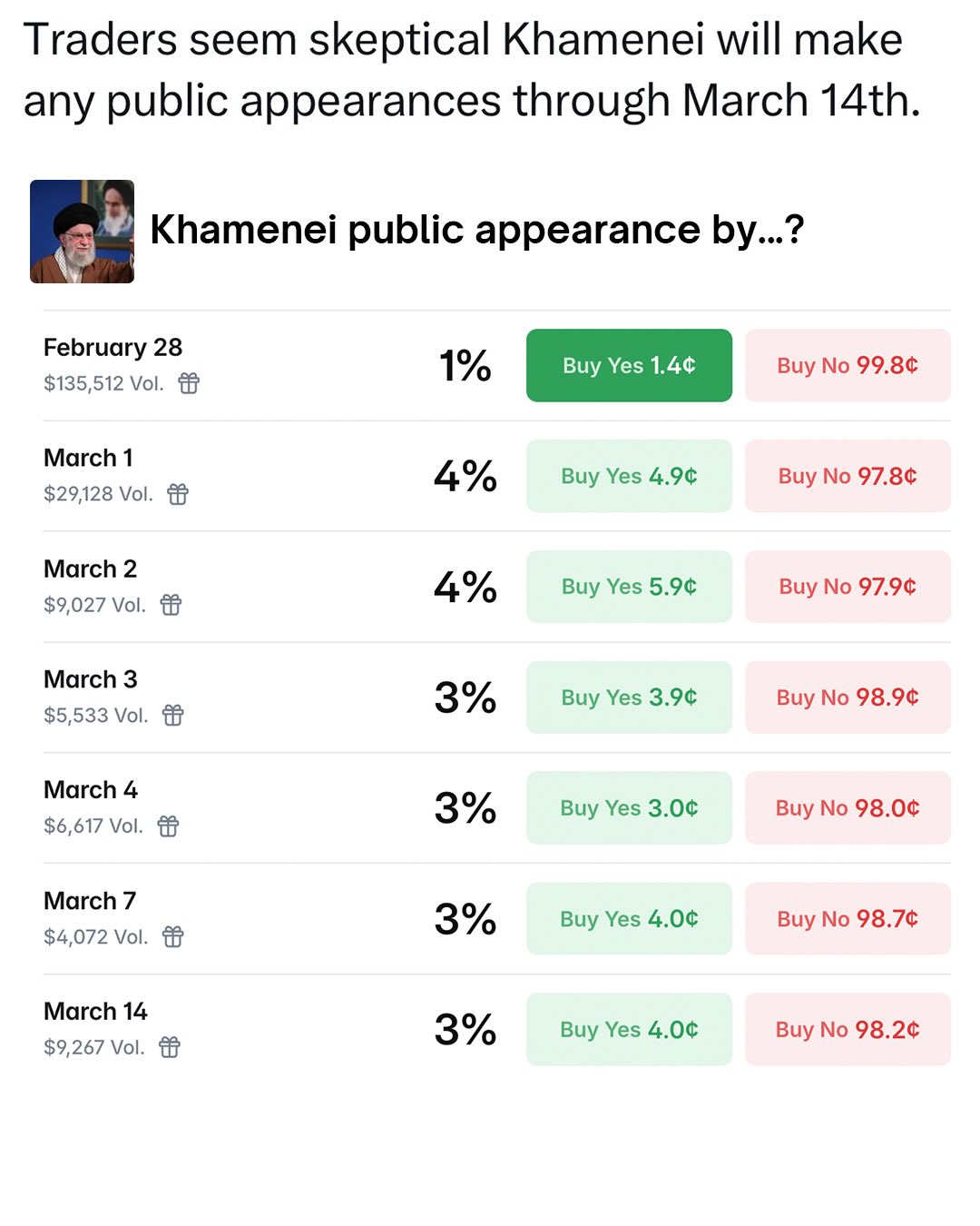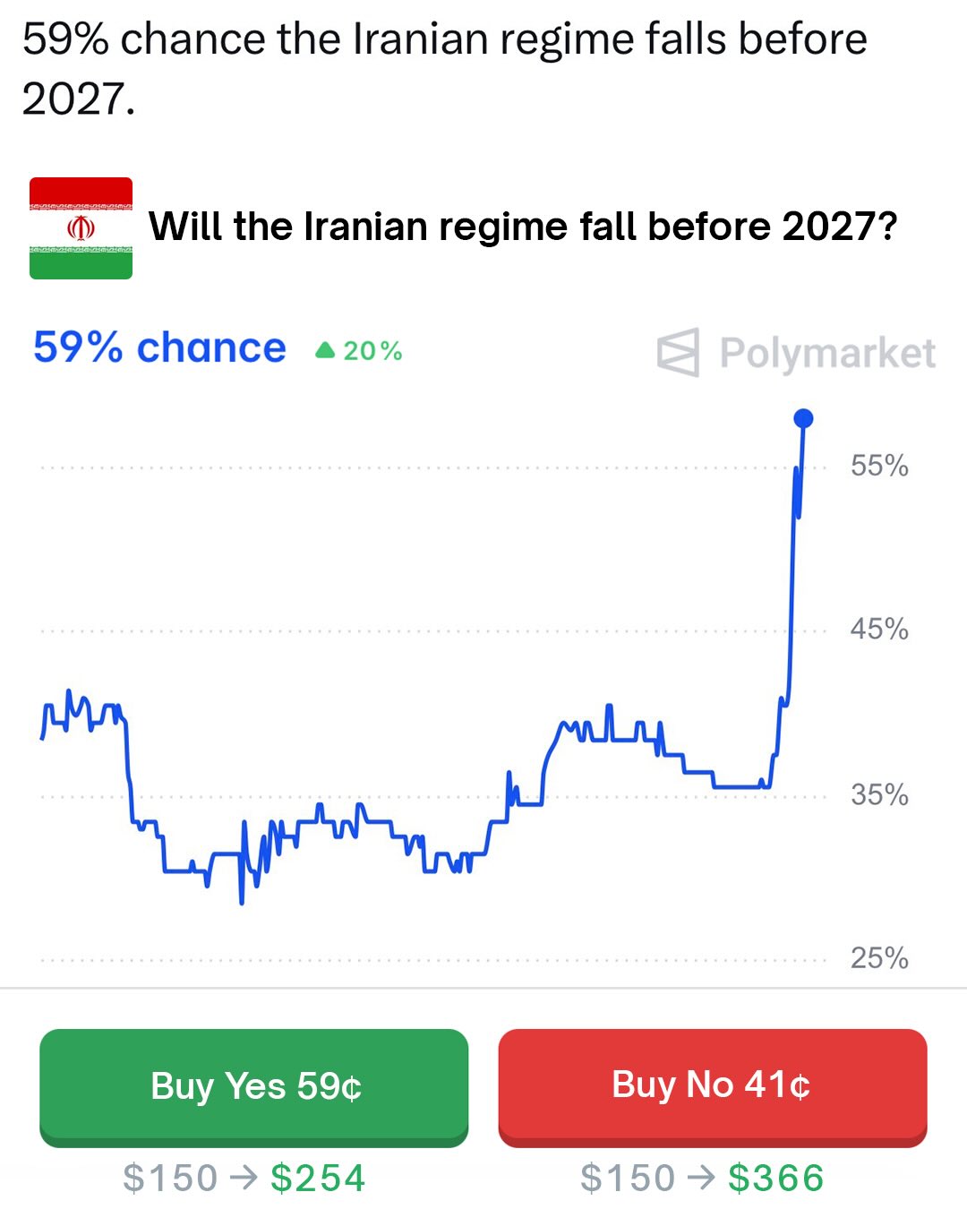 Traders predict a 59% chance the Iranian regime falls before 2027.