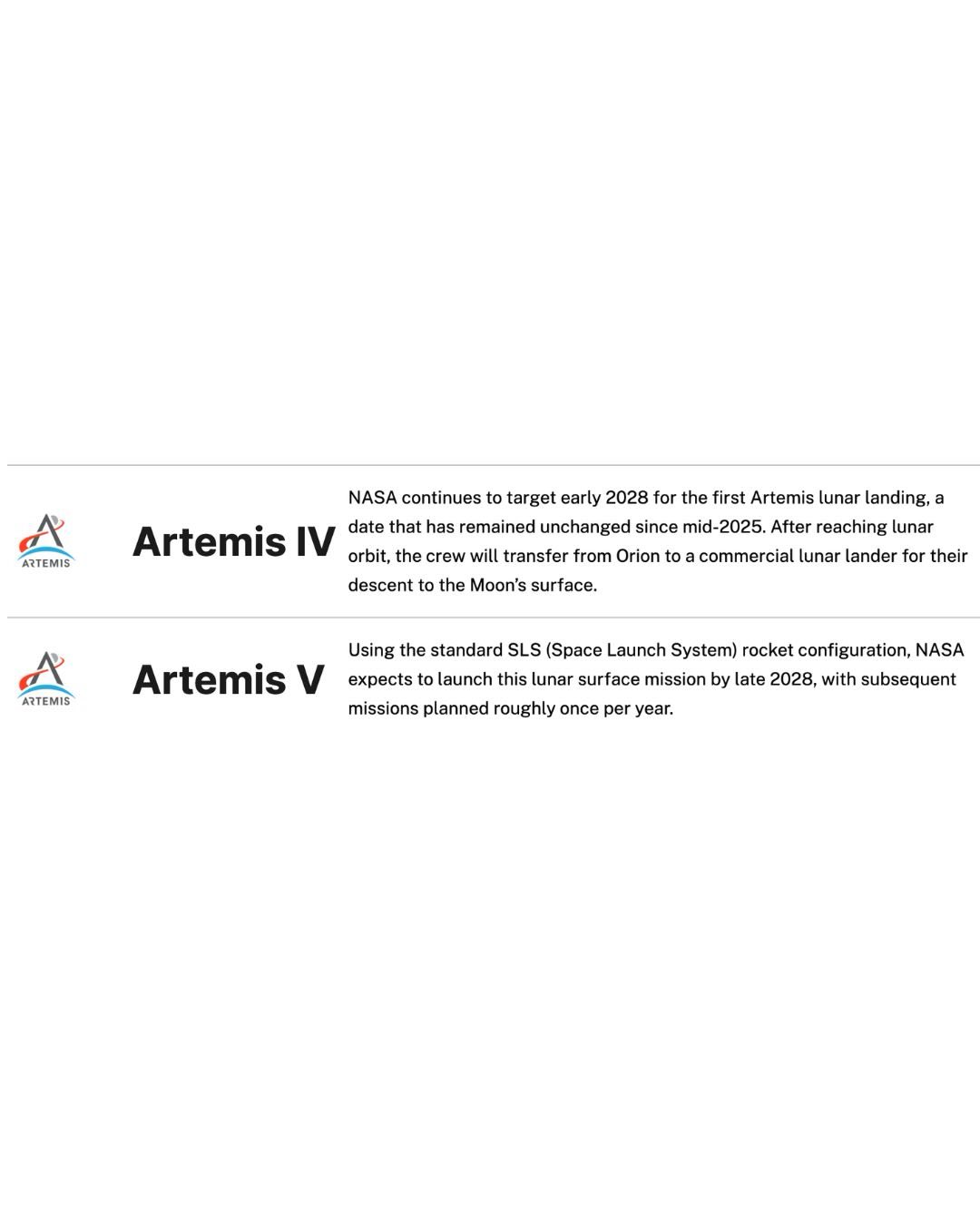 NASA continues to target an early 2028 timeframe for its first Artemis crewed Moon landing, marking a major step in its long-term return to the lunar surface and the first crewed lunar landing under the Artemis program.