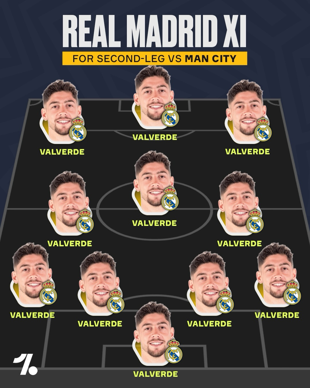 Just GK, ST and LB to go ๐ญ We all know that all Real Madrid need to complete the job vs Man City is a team of Fede Valverdes ๐