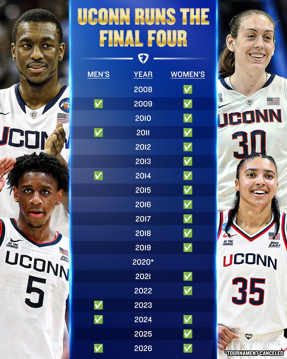 UCONN has had their men or women's team in the Final Four every year since 2008 ๐ฅ The Huskies run college basketball ๐