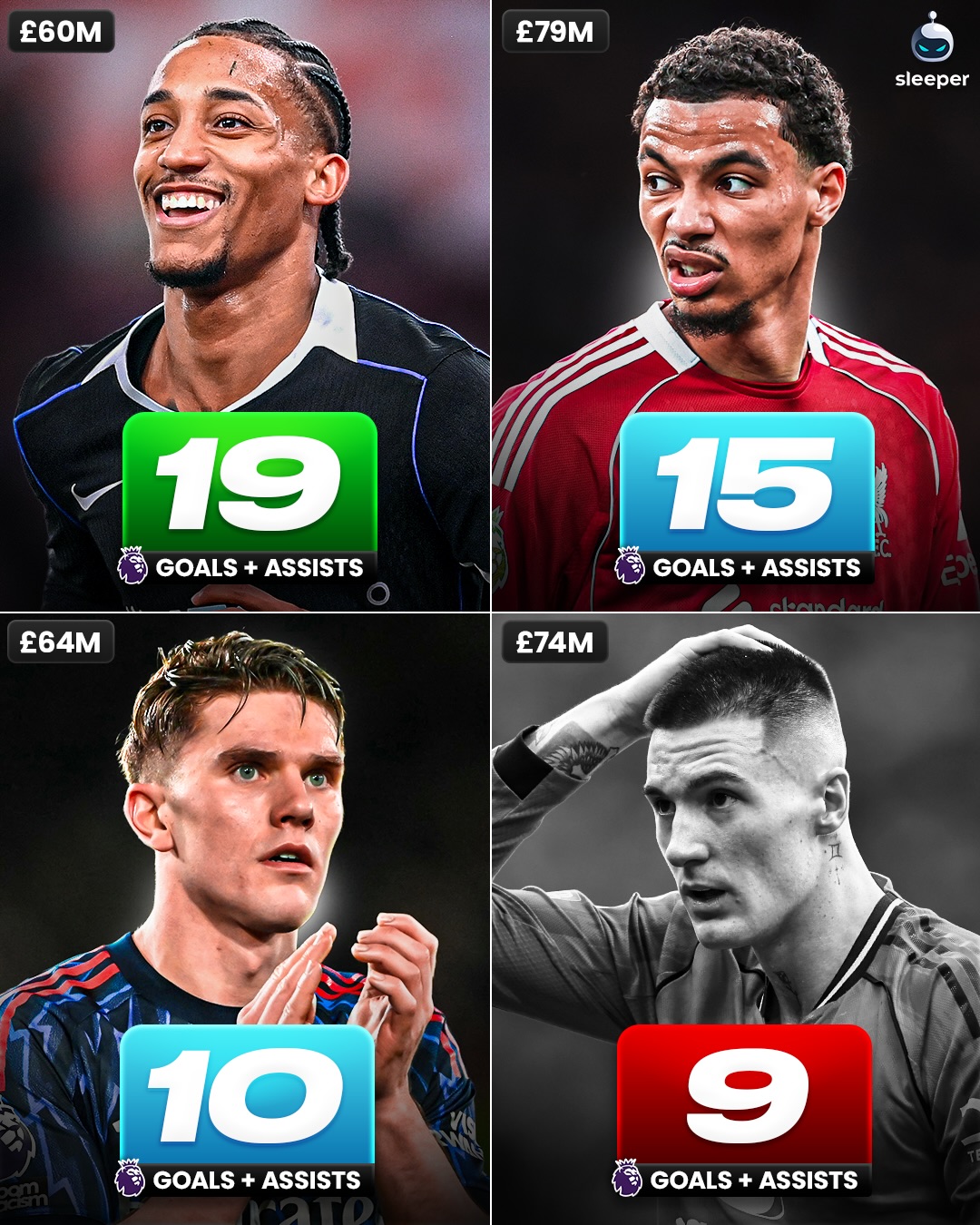 The Chelsea forward leads on G+A’s amongst others such as Viktor Gyokeres, Hugo Ekitike and Benjamin Sesko… but what makes it even more convincing is that he was the cheapest from the selected, costing only £60m!