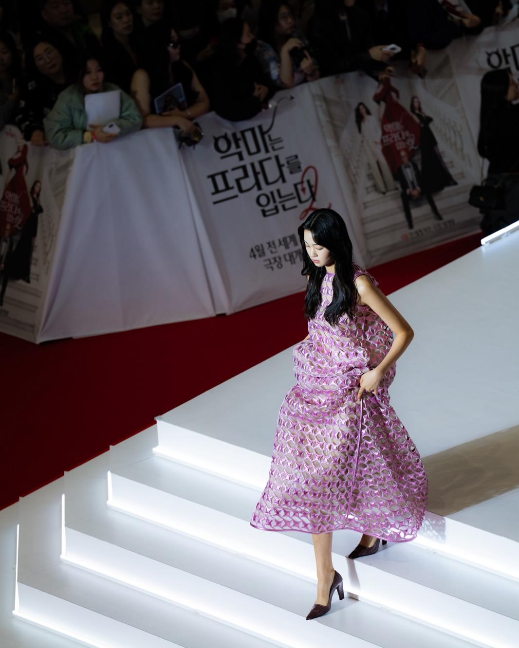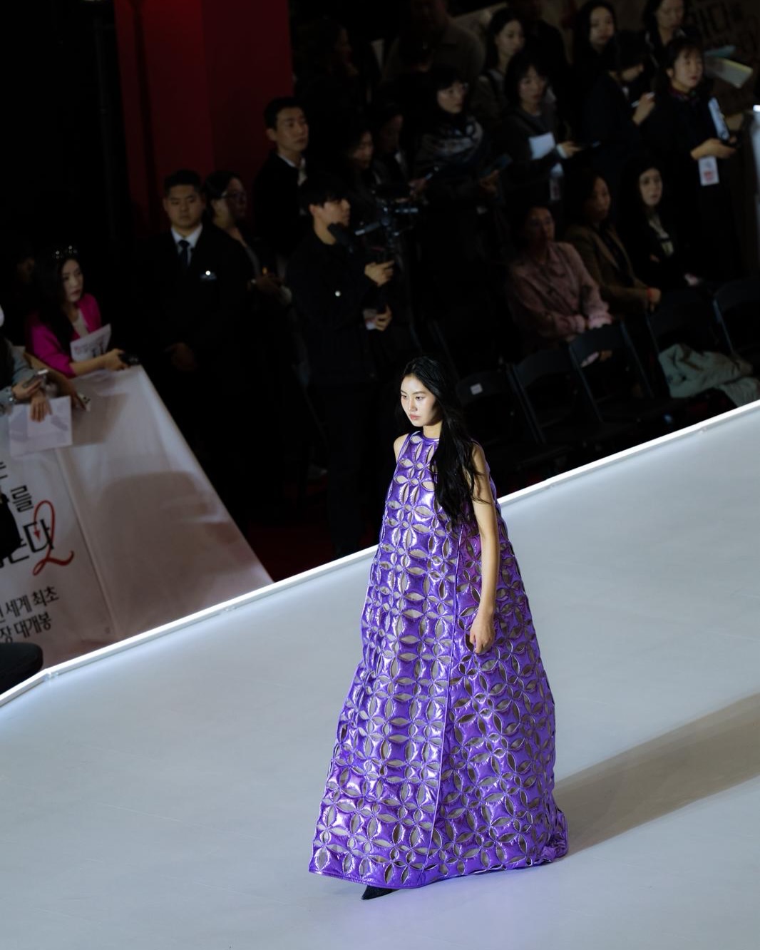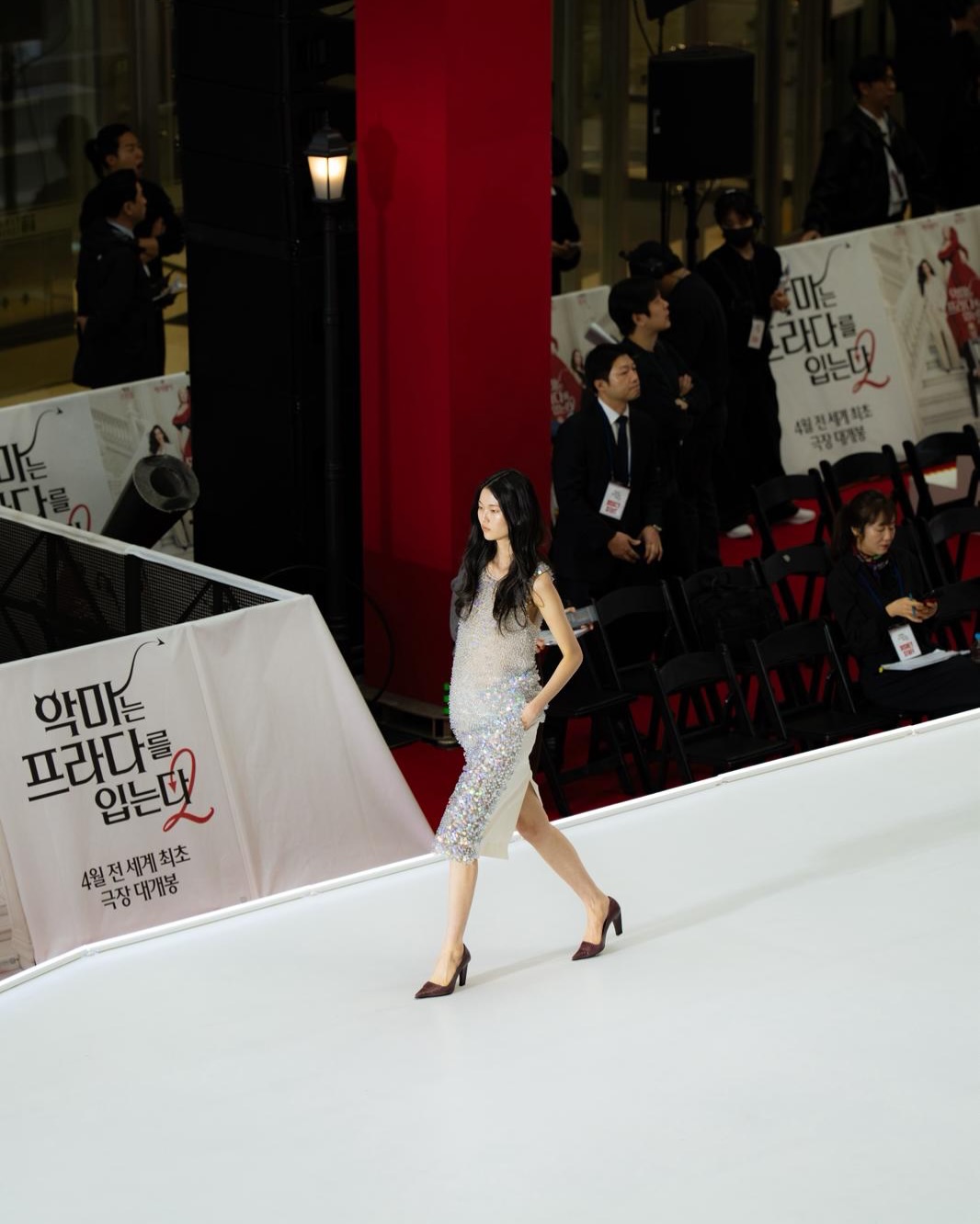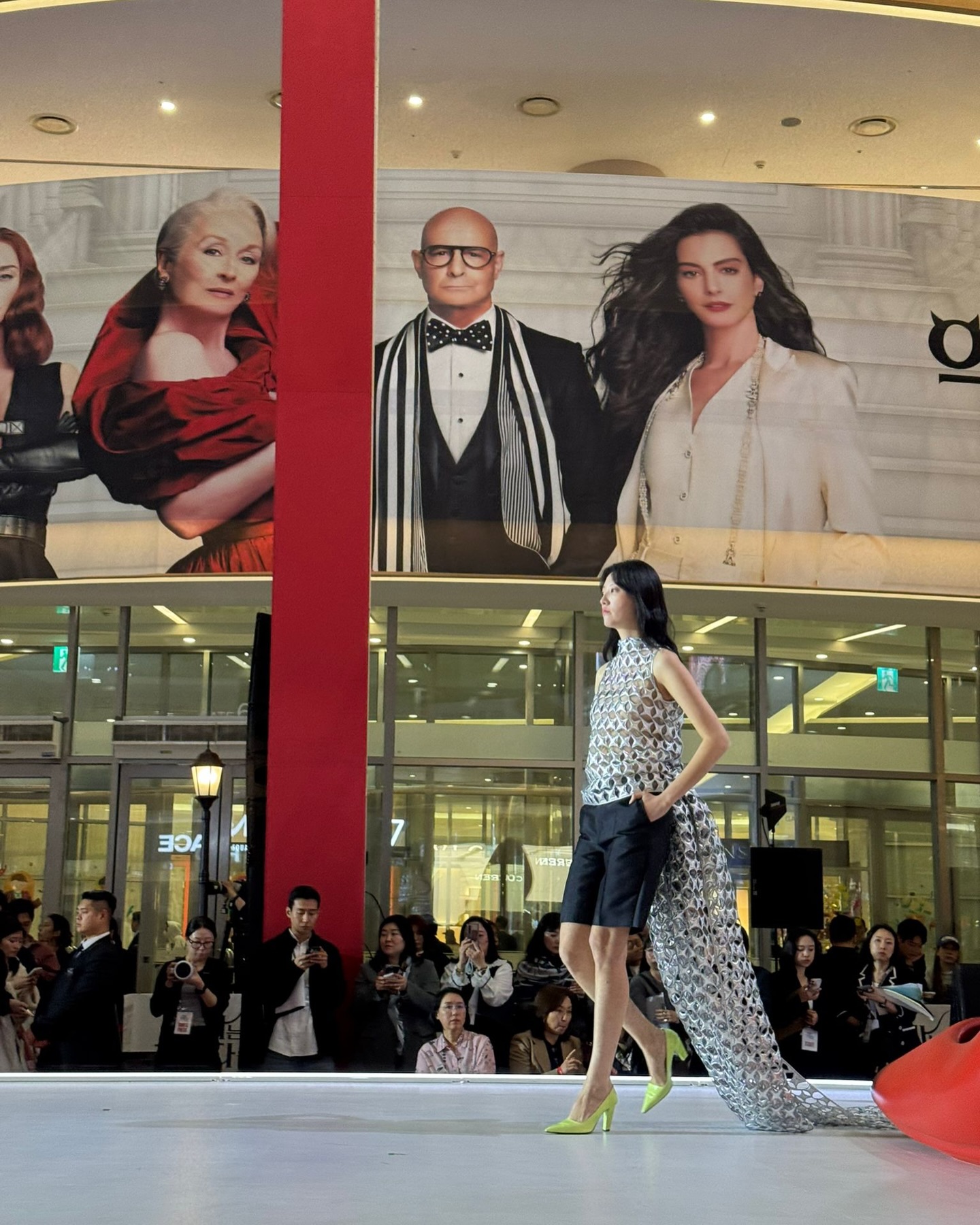 Super brilliant! At the Seoul premiere for 'The Devil Wears Prada 2' a lucky emerging Korean designer @jaden__cho was chosen to present his latest collection to the full crowd!!!