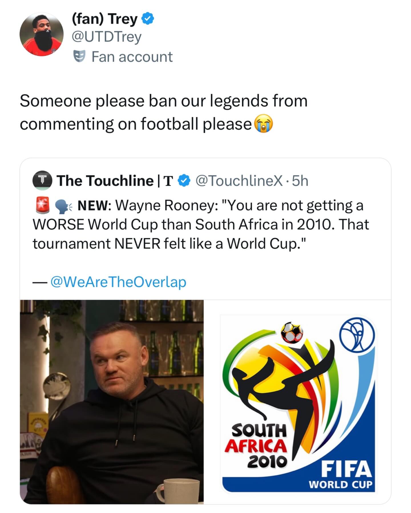 ๐ฃ๏ธ๐ด๓ ง๓ ข๓ ฅ๓ ฎ๓ ง๓ ฟ Wayne Rooney: โYou are not getting a WORSE World Cup than South Africa in 2010. That tournament NEVER felt like a World Cup.โ