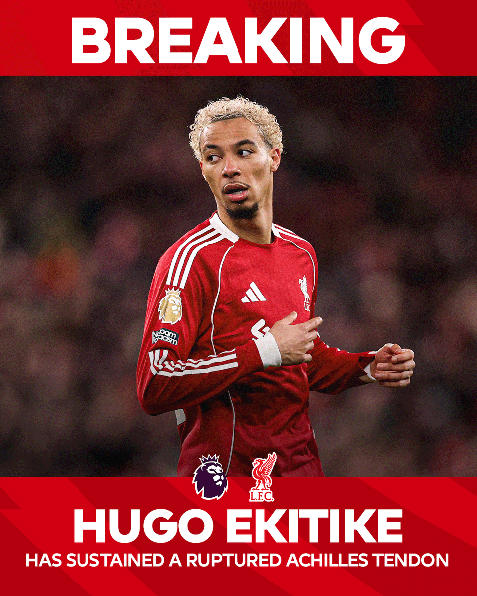 Hugo Ekitike has suffered a long-term injury and will miss the rest of @LFC's season and this summer's World Cup We wish Hugo all the best in his recovery
