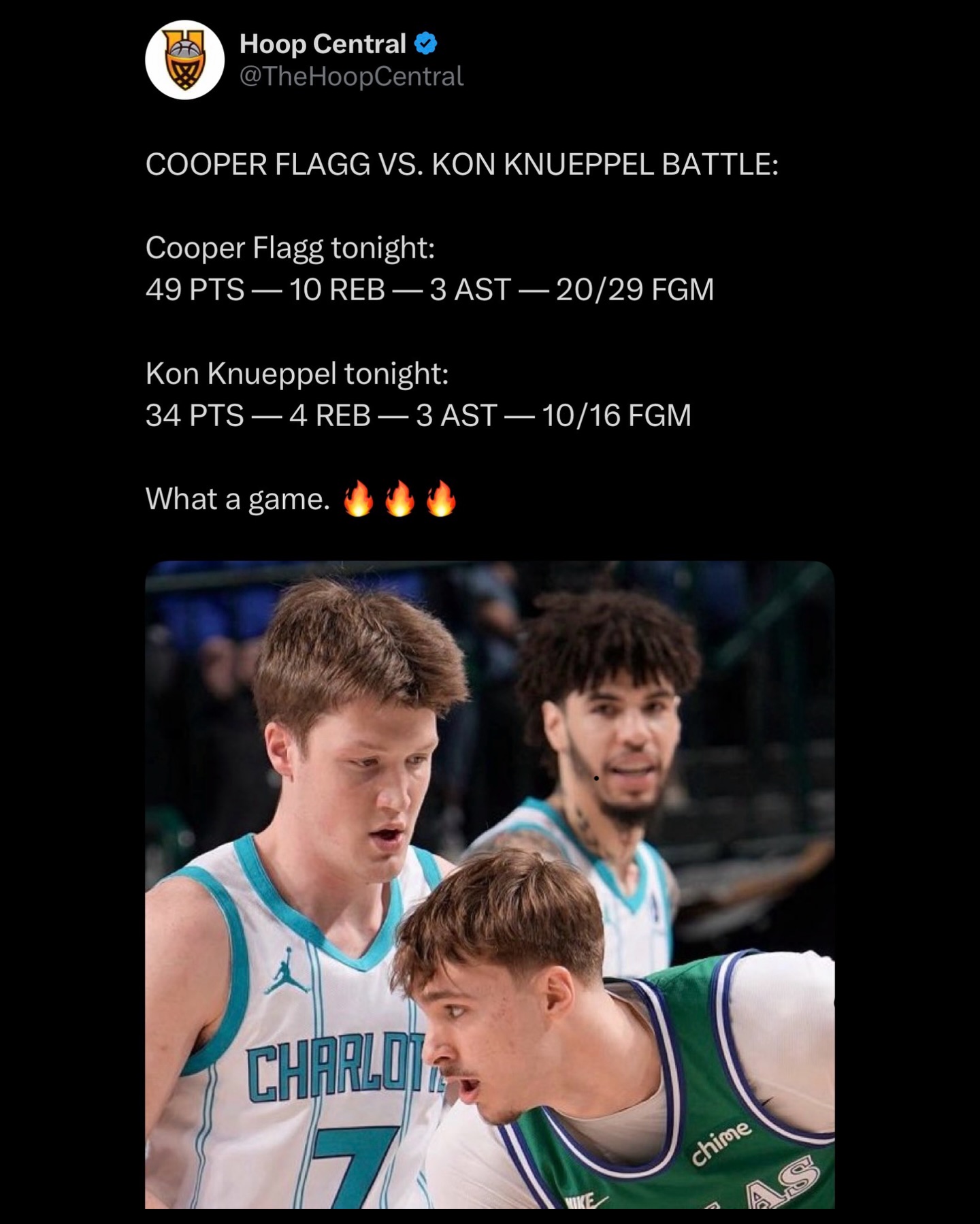 WHAT A BATTLE ๐ฅ Kon Knueppel and the Hornets defeat Cooper Flagg and the Mavericks 123-121 ๐๐ฟ