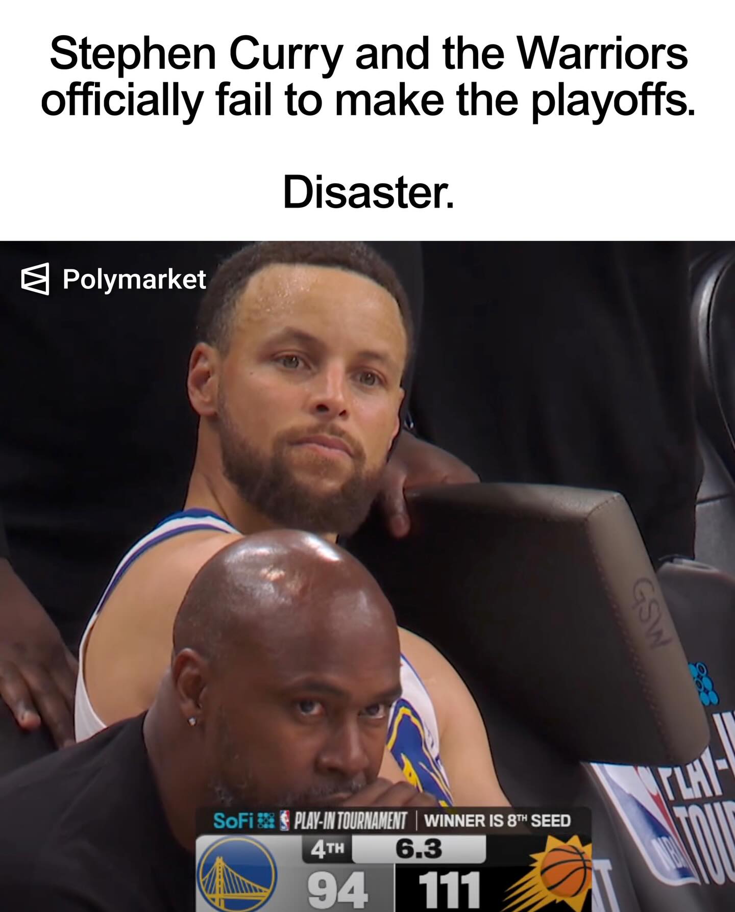 Stephen Curry and the Warriors officially fail to make the playoffs. π Get Steph Curry HELP. π€¦ββοΈ