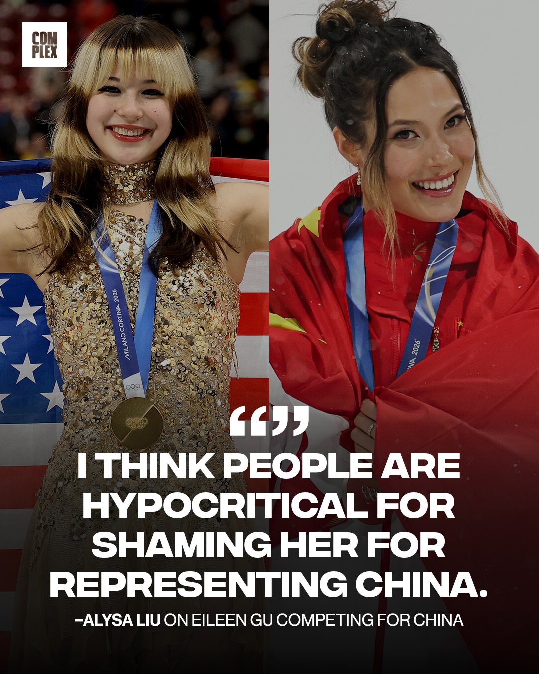 “I think people are hypocritical for shaming her for representing China,” Liu continued. “So in my head it’s a bit hypocritical, because her mom is an immigrant. Y’all would have told her to go back to China. Now that they’re back in China, you’re mad.”