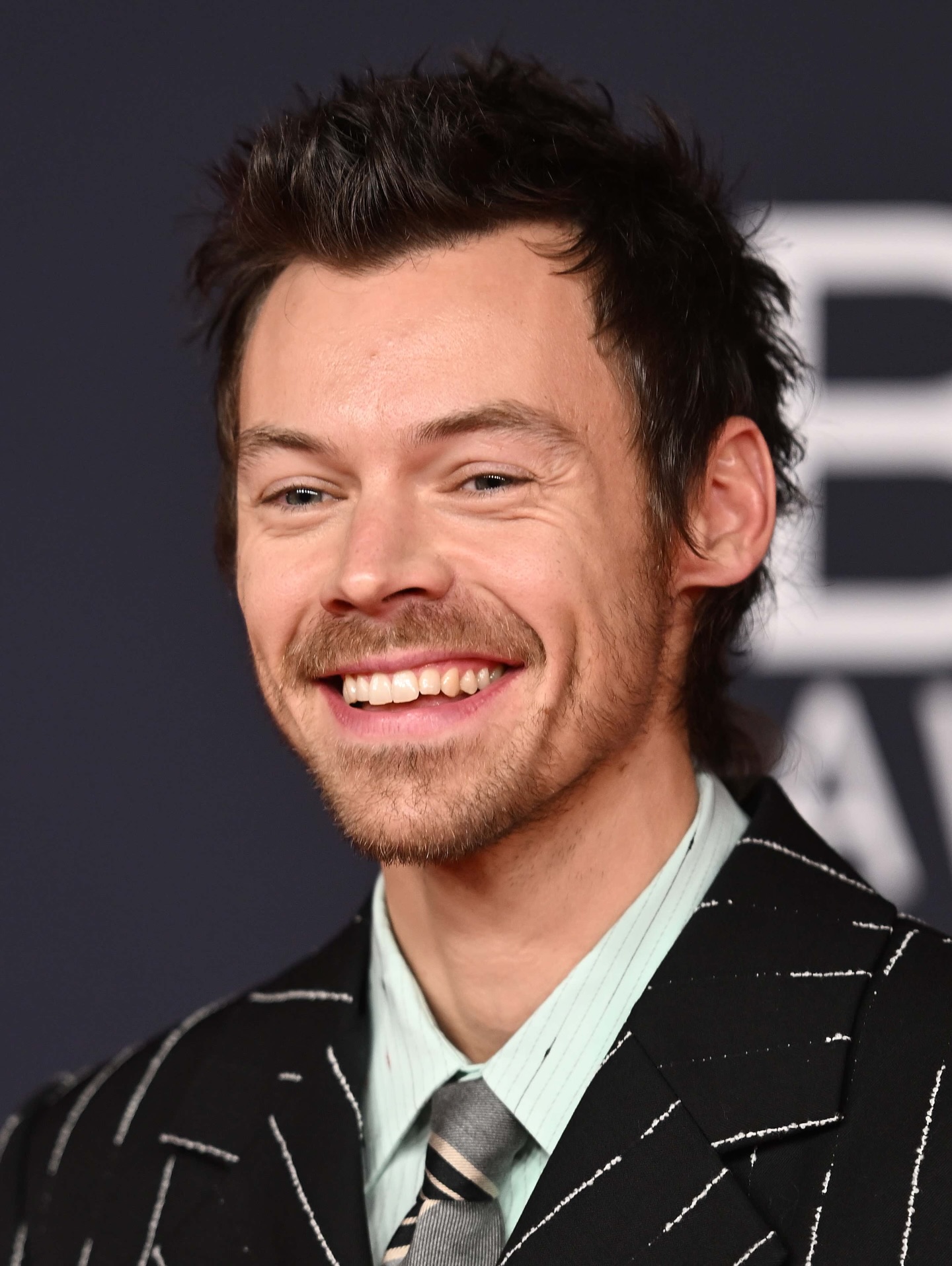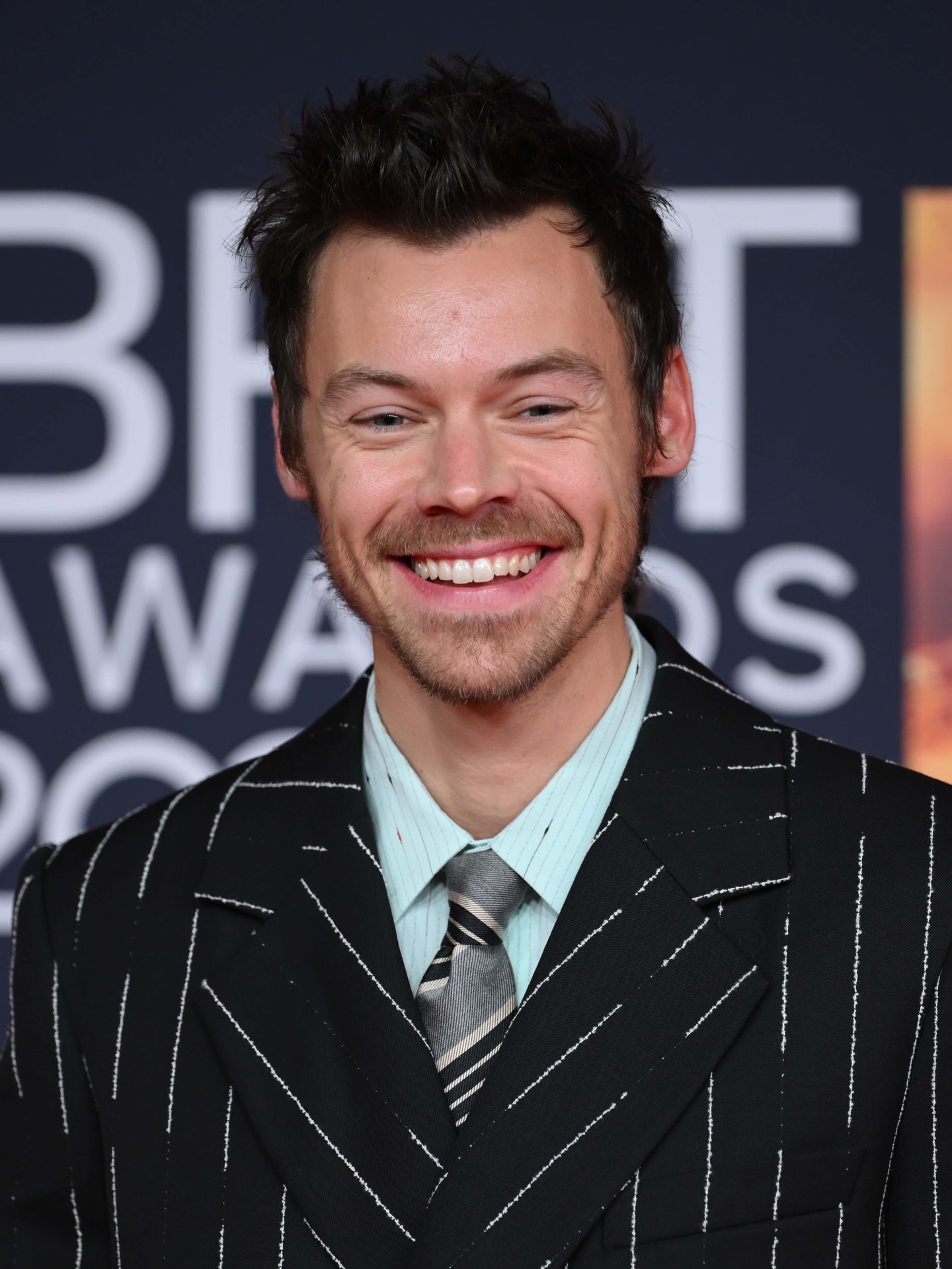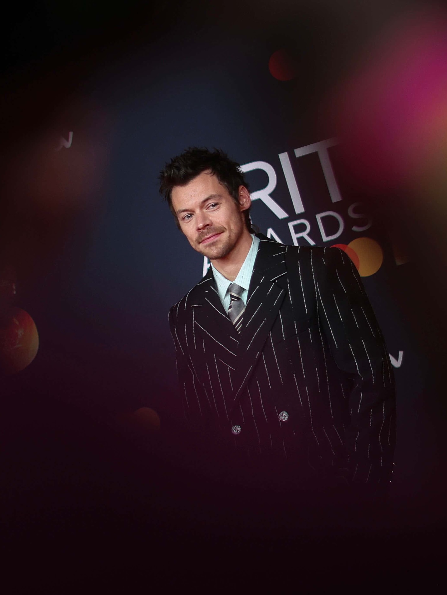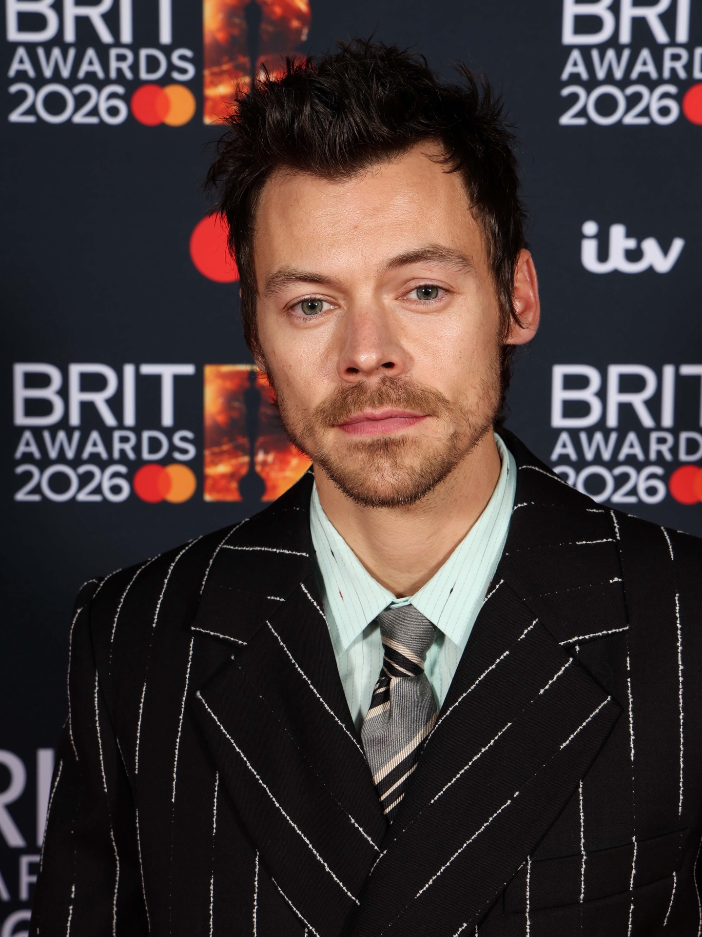 Harry Styles looking sharp in pinstripes at the Brit Awards today ๐ฅ