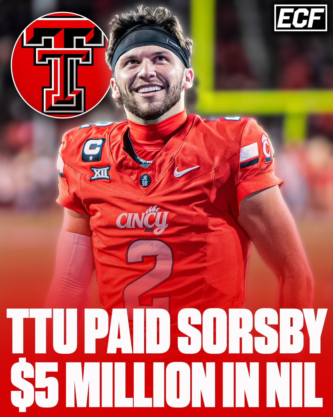 Texas Tech paid Sorsby $5 million in NIL to transfer from Cincinnati to Texas Tech…