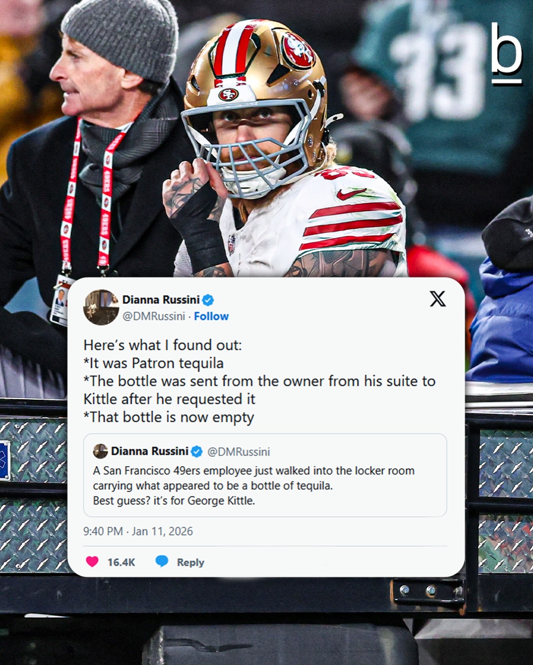 His response? Get drunk. Kittle had the team’s owner Jed York send him a bottle of Patron tequila after he tore his Achilles. 😂
