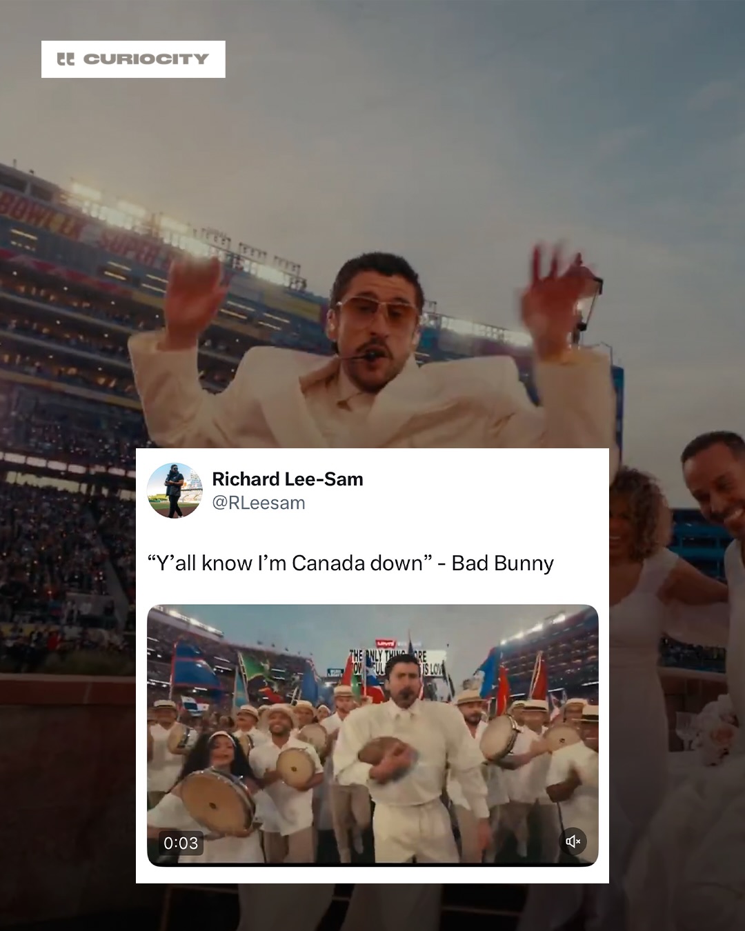 @badbunnypr shouted out Canada during his Super Bowl Halftime Show performance, and Canadians are STILL NOT OVER IT 😍