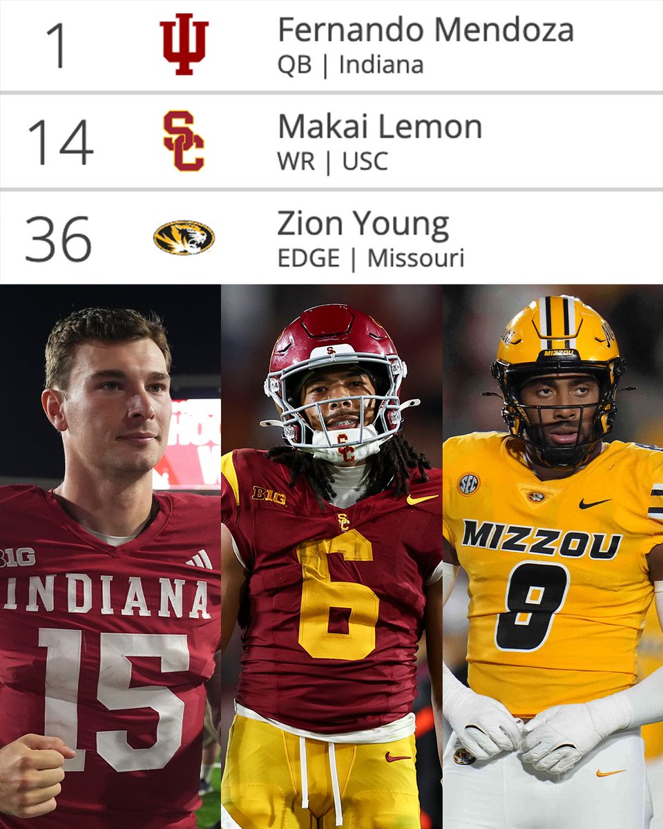 The Raiders latest mock via @tankathon 1⃣ Fernando Mendoza 2⃣ Makai Lemon 3⃣ Zion Young The rebuild would start strong in Las Vegas 🔥