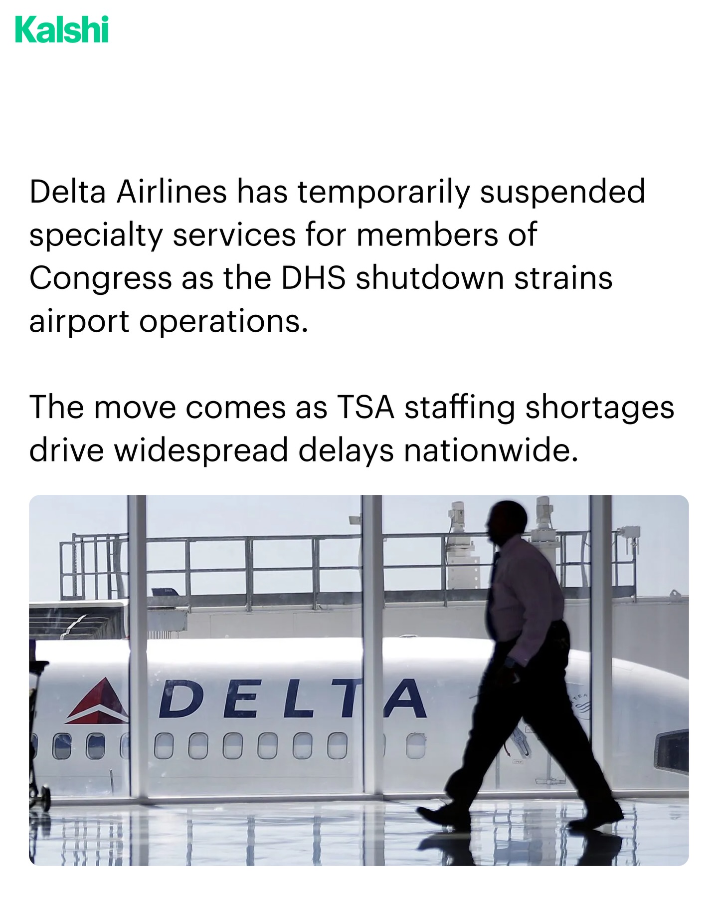 Delta has suspended specialty services for members of Congress as the DHS shutdown continues to strain airport operations.