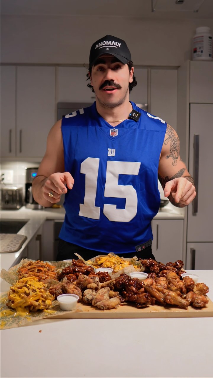 I don’t know how you sickos like Mukbangs, literally every time I make them I cringe at how gross it is 😭. Any ways in honour of the Super Bowl today I decided to eat like an absolute human dumpster fire and take down a shit ton of chicken wings and fries. We have 75 wings comprised of bbq, honey garlic, Korean style, garlic Parmesan and a mystery flavour. We also ordered cheesy fries and buffalo chicken style fries.