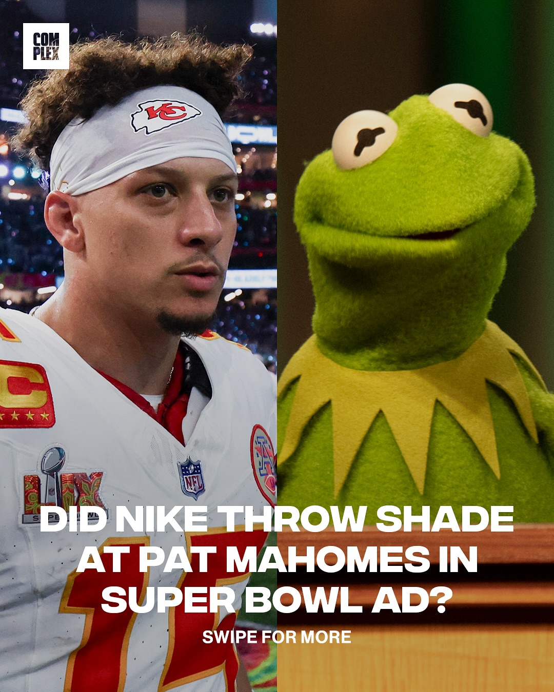 Nike throwing shade? After the Eagles’ Super Bowl win, Nike dropped an ad narrated by Kermit the Frog. 🐸 Mahomes, as you know, is one of Adidas’ top athletes and may or may not have a voice resembling everyone’s favorite Muppet 👀