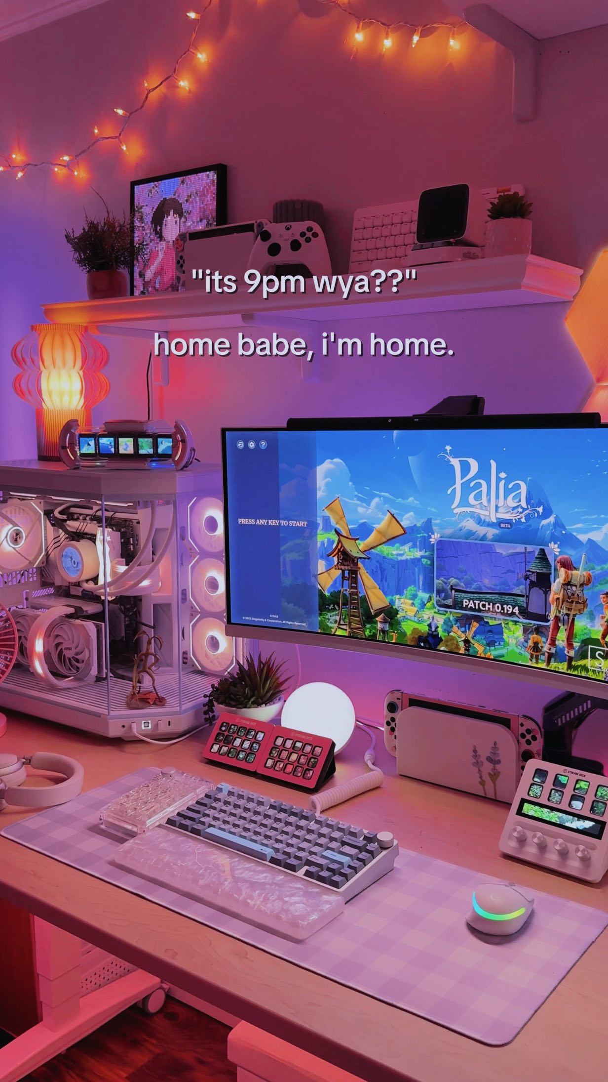 Cozy Gaming Nights, Cozy Gaming, Cozy Gamer, Cozy Gaming Setup, Desk Space, Gaming PC, Gaming Room, Homebody Life, Desk Inspo, Palia, Play Palia, Palia Community