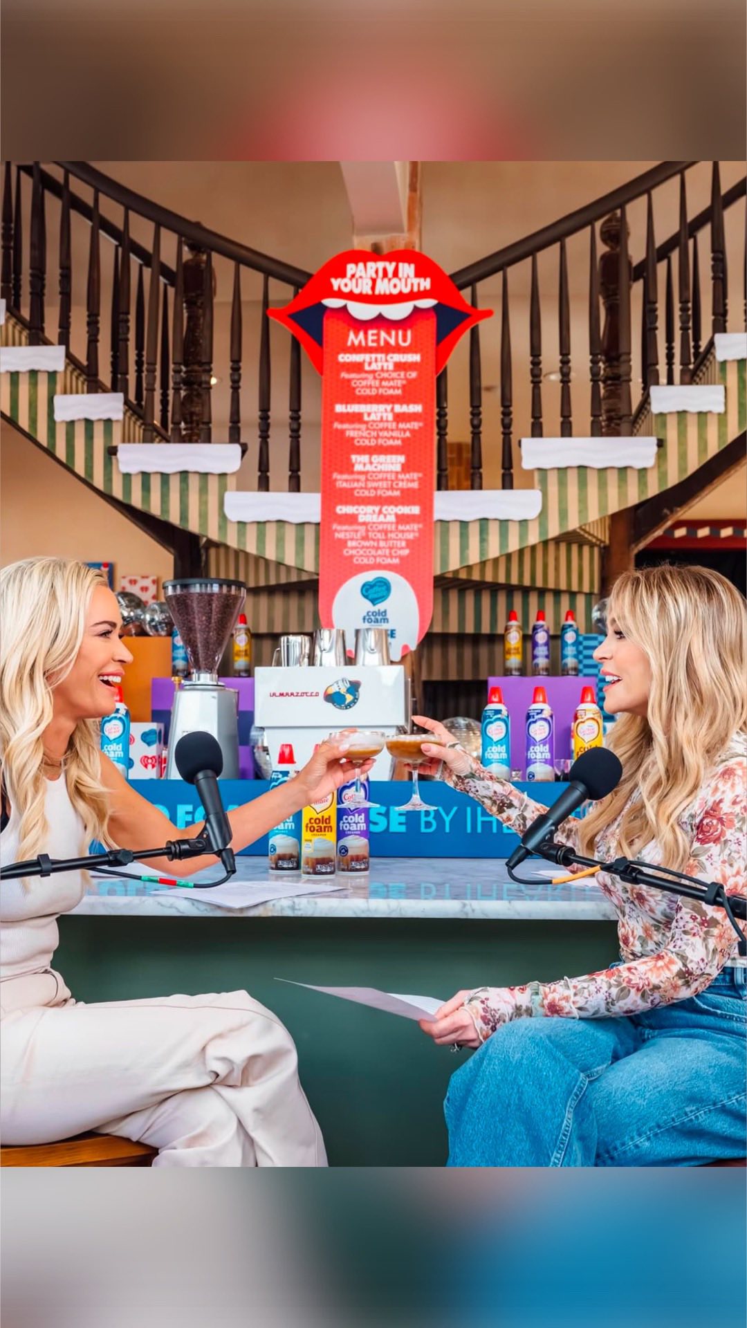 #Ad Listen to our brand new episode of Two Ts In A Pod recorded live from the big game in New Orleans at the @coffeemate Cold Foam House! A little foam. A lotta fun! #gimmecoldfoam #coffeematecoldfoam