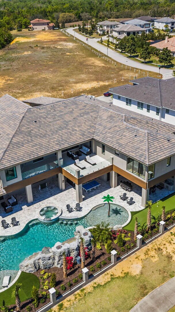 📍12 bedrooms, 14,000 sq ft, a private pool, bowling alley, basketball court, and a movie theater all under one roof in Orlando.