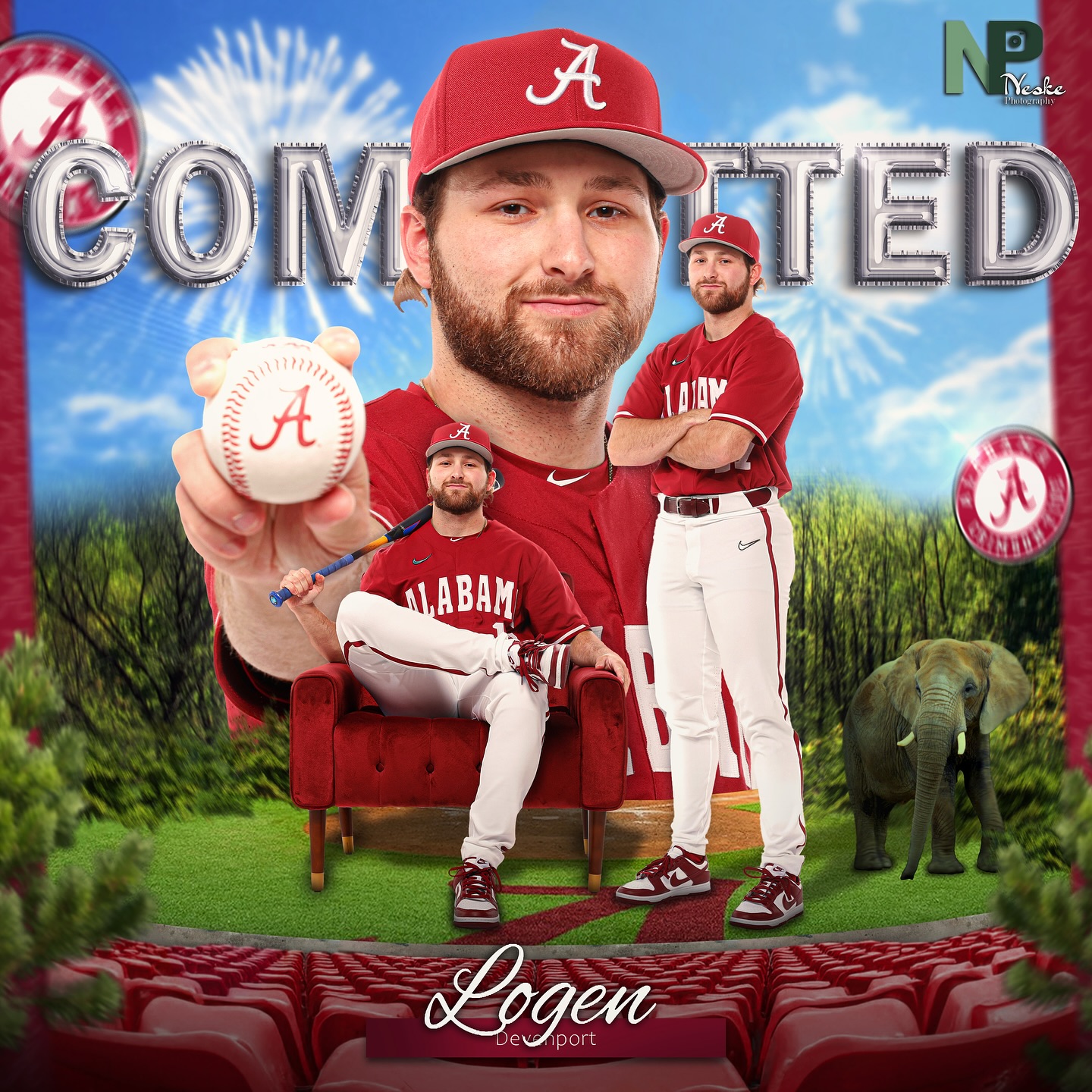 Athlete Logen Devenport recently announced his commitment at The University of Alabama to play Division I baseball and is ready to start the next chapter of his life! #crimsontide #graphicdesign #sports #baseball