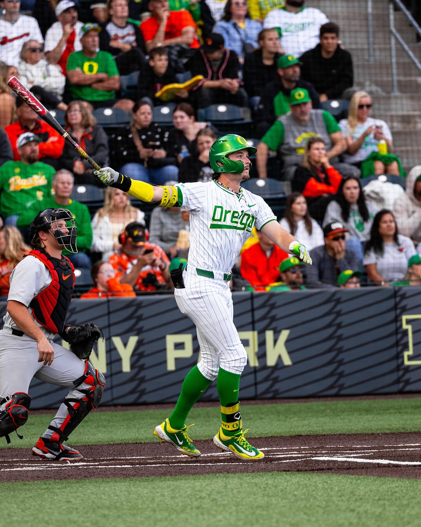 @OregonBaseball’s Mason Neville sets the new single-season program HR record. #GoDucks