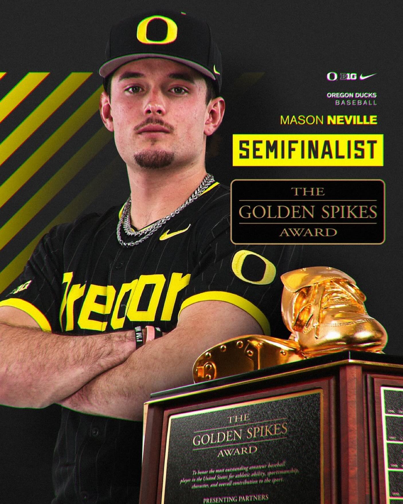 Oregon’s @maseneville and @jacob.walsh42 have been named Dick Howser Trophy semifinalists. The trophy goes to college baseball’s player of the year.