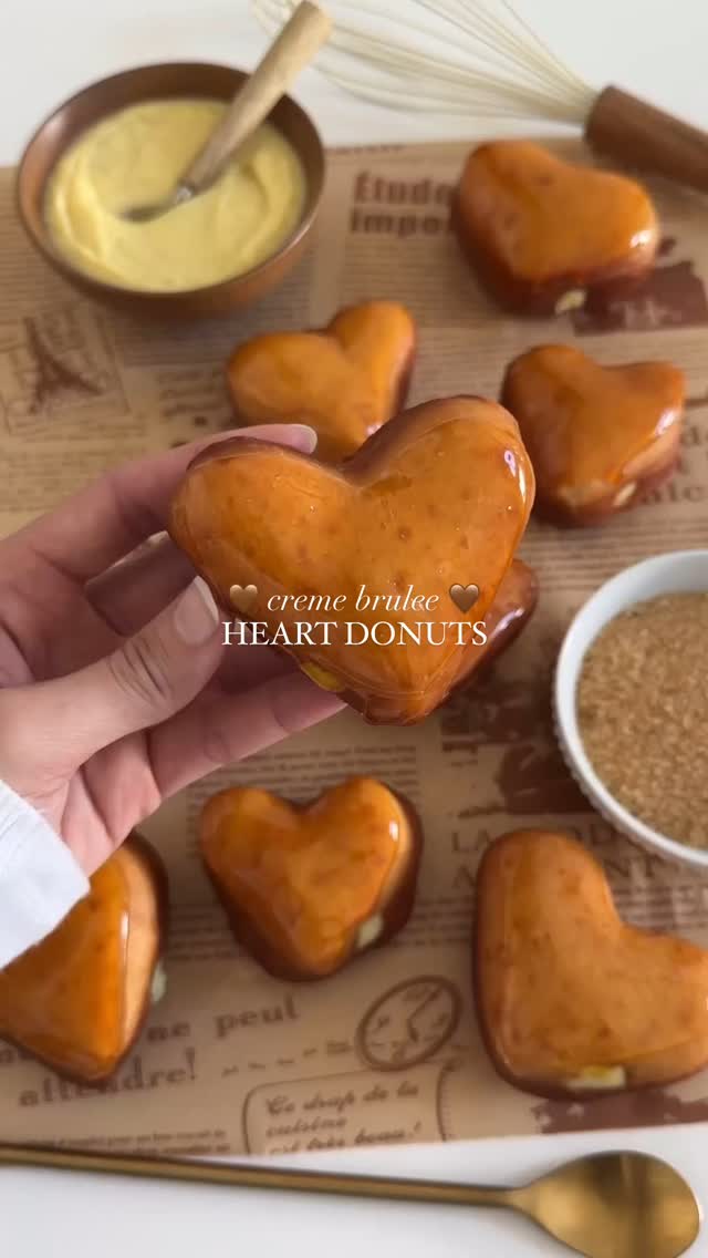 creme brulee heart donuts 🤎 have to reshare these for this month! Full recipe on the blog as always - link in bio