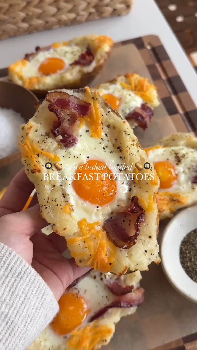 Twice Baked Loaded Breakfast Potatoes 🤎 such a filling breakfast and tastes like a warm hug! Full recipe up on the blog as always - link in bio 🥔