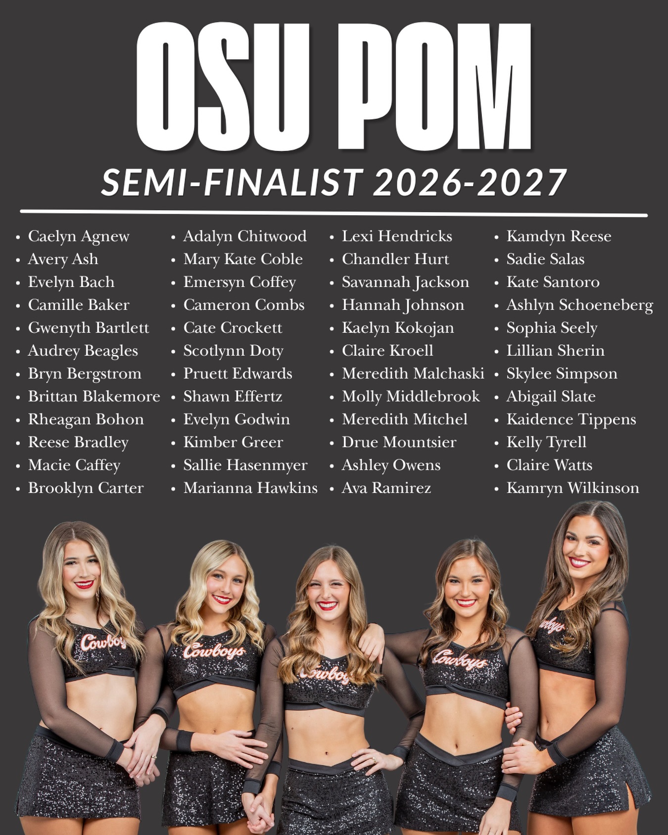 Oklahoma State Pom (@osu_pom) has 30.0K Instagram followers with a 3.56% engagement rate over the past 12 months. Across 134 posts, Oklahoma State Pom received 147K total likes and 912K impressions, averaging 1.10K likes per post. This page tracks Oklahoma State Pom's performance metrics, top content, and engagement trends — updated daily.