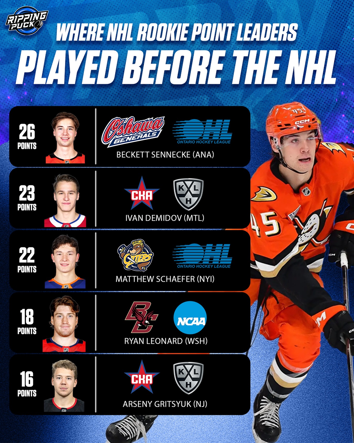 Where NHL rookie point leaders played before the NHL #nhl #hockey