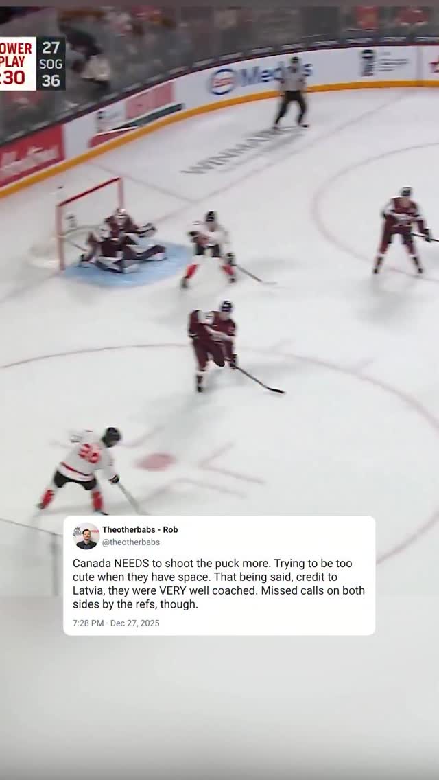 Canada NEEDS to shoot the puck more. Trying to be too cute when they have space. That being said, credit to Latvia, they were VERY well coached. Missed calls on both sides by the refs, though. #worldjuniors #hockey