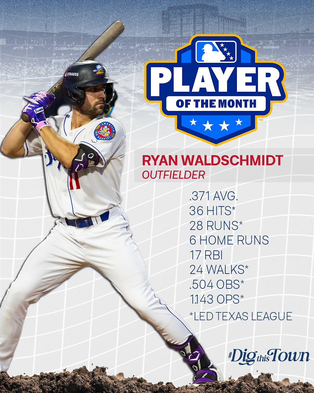 Ryan Waldschmidt has been named @milb’s Texas League Player of the Month for August! Waldschmidt dominated August, leading the Texas League with 36 hits, 28 runs, 24 walks, a .504 OBP, and a 1.143 OPS, while adding 6 HR, 17 RBIs, 12 steals, and 9 multi-hit games.