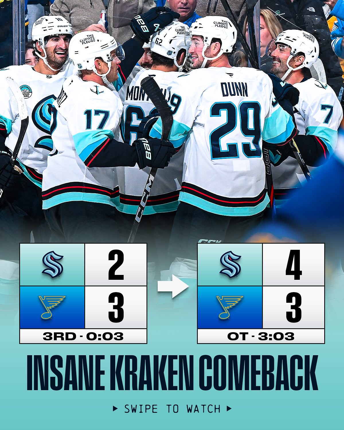 Seattle Kraken (@seattlekraken) has 650K Instagram followers with a 3.93% engagement rate over the past 12 months. Across 1.24K posts, Seattle Kraken received 6.76M total likes and 33.8M impressions, averaging 5.44K likes per post. This page tracks Seattle Kraken's performance metrics, top content, and engagement trends — updated daily.