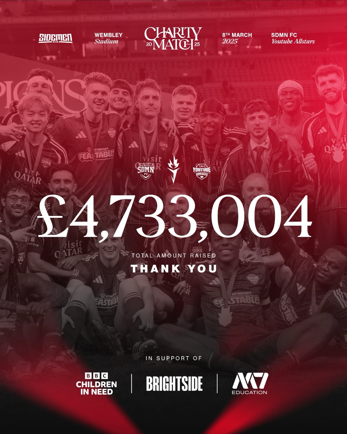 Sidemen (@sidemen) has 6.20M Instagram followers with a 4.96% engagement rate over the past 12 months. Across 782 posts, Sidemen received 63.2M total likes and 753M impressions, averaging 100K likes per post. This page tracks Sidemen's performance metrics, top content, and engagement trends — updated daily.