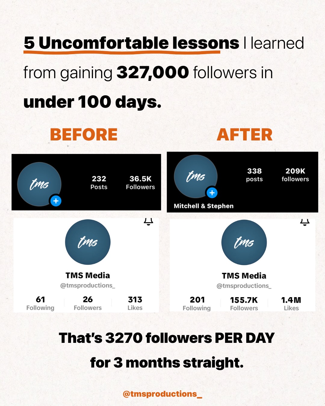 Mitchell & Stephen (@tmsproductions_) has 306K Instagram followers with a 0.00% engagement rate over the past 12 months. Across 1 posts, Mitchell & Stephen received 49 total likes and 0 impressions, averaging 49 likes per post. This page tracks Mitchell & Stephen's performance metrics, top content, and engagement trends — updated daily.
