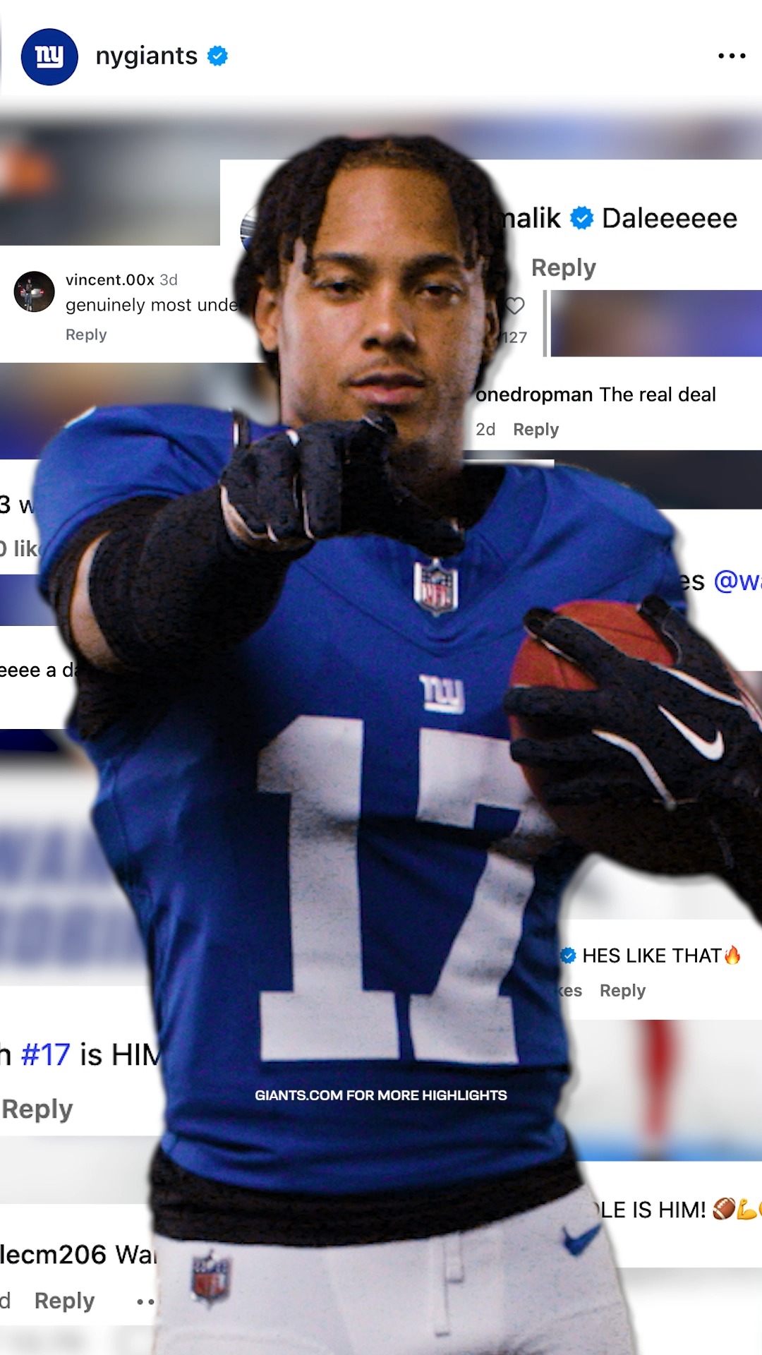 Wan’Dale Robinson (@wandalerobinson) has 126K Instagram followers with a 4.43% engagement rate over the past 12 months. Across 15 posts, Wan’Dale Robinson received 317K total likes and 2.33M impressions, averaging 21.1K likes per post. This page tracks Wan’Dale Robinson's performance metrics, top content, and engagement trends — updated daily.