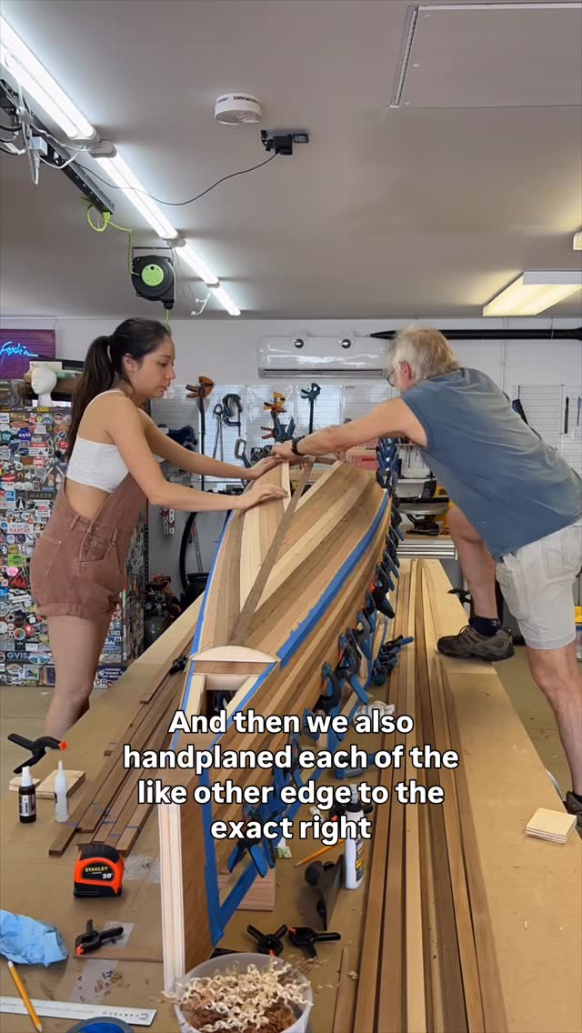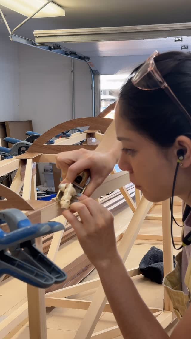 Finally, my big secret is out! I asked my amazing uncle @ottercreeksmallcraft to come out to LA to spend a week helping me CEDAR STRIP my airplane. There have been a handful of all-plywood sheathed Pietenpols but cedar stripping felt like a Xyla-spin on it that just HAD to happen.