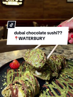 you need to try the middle eastern inspired sweets at @Kanoon Smokehouse | USA in waterbury ct They’re known for their bbq x middle eastern cuisine, but I bet you didn’t know they also have a cafe! Serving sweets & drinks like turkish coffee, dubai chocolate crepe sushi, hot chocolate, and so much more! Open 12pm-10pm every day #kanoonct #waterburyct