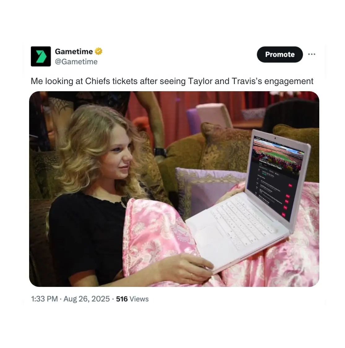 Gametime (@gametime) has 30.1K TikTok followers with a 3.35% engagement rate over the past 12 months. Across 139 videos, Gametime received 14.4K total likes and 450K views, averaging 104 likes per video. This page tracks Gametime's performance metrics, top content, and engagement trends — updated daily.