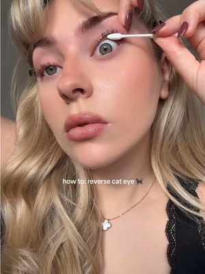 how to: reverse cat eye 🔄🐈⬛ tips- 1. wipe top & bottom waterline with a cotton bud - this will make the pencil glide on easily 2. use black eyeshadow to blend out the black eye pencil 3. clean up the top wing with concealer - this will make it look so much cleaner! 4. set the water line with translucent powder for longevity #makeup #cateye #reversecateye #makeuptutorial #beautyhacks #Eyeliner #makeuphacks #makeuptransformation