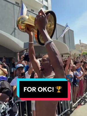 Shai 🇨🇦 takes a walk with Larry! #NBA #Parade #OKCThunder
