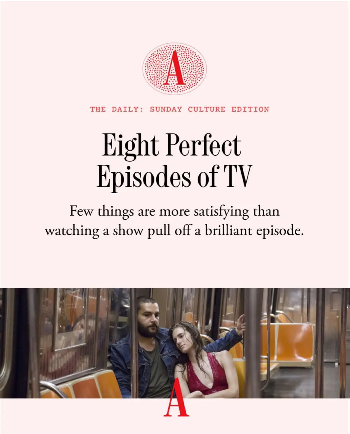Few things are more satisfying than watching a show pull off a clever and high-octane episode, Stephanie Bai writes in The Daily’s Sunday culture edition. For those looking to revisit some greats, our writers and editors answer the question: What do you think is a perfect episode of TV? Read more and subscribe to The Atlantic Daily at the link in our bio. #TV #culture #streaming