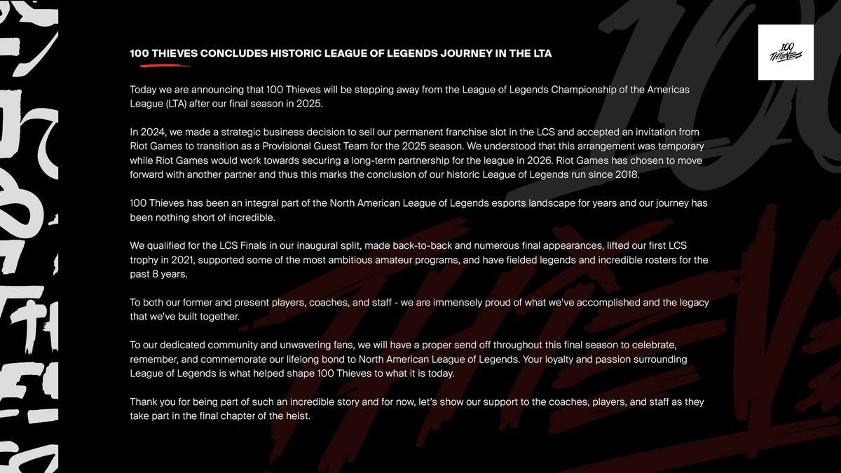 Today, after 4 incredible years, we say goodbye to @NiceWigg as a 100 Thieves creator.