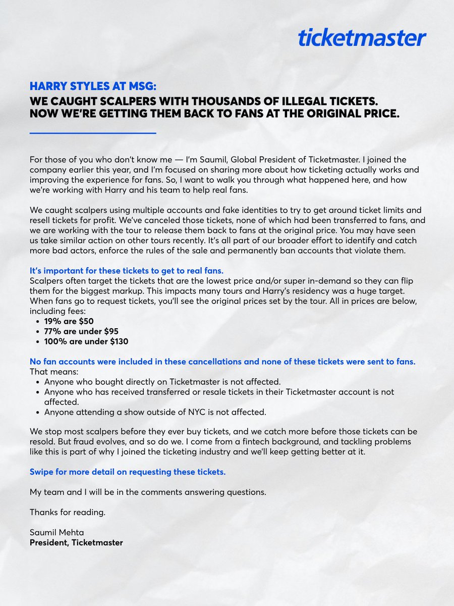@jacksonsking Yep. Face Value Exchange protects artists, fans, and the original ticket price - sounds like StubHub is scared that 100+ tours and counting are using this tool.