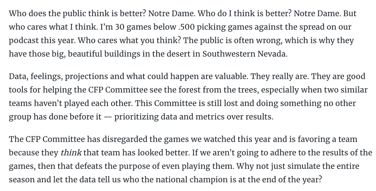 Texas is being punished for Florida. It's true. But if it played Rice and not Ohio State, then 10-2 with that resume with the Florida loss is in. So, in reality, regardless of the verbal gymnastics people want to play, the Longhorns are being penalized for playing Ohio State because they didn't have to.